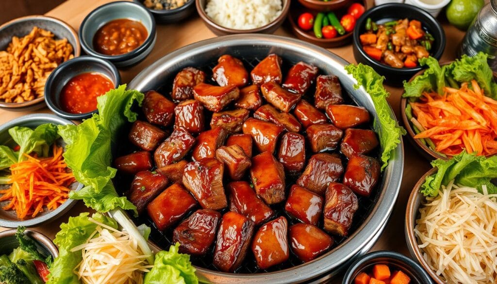 Korean cuisine is rich and diverse, with traditional bulgogi being a favorite. It dates back to the Goguryeo era. Over time, it has been shaped by cultural and social changes. Bulgogi is a key part of Korean food culture.
